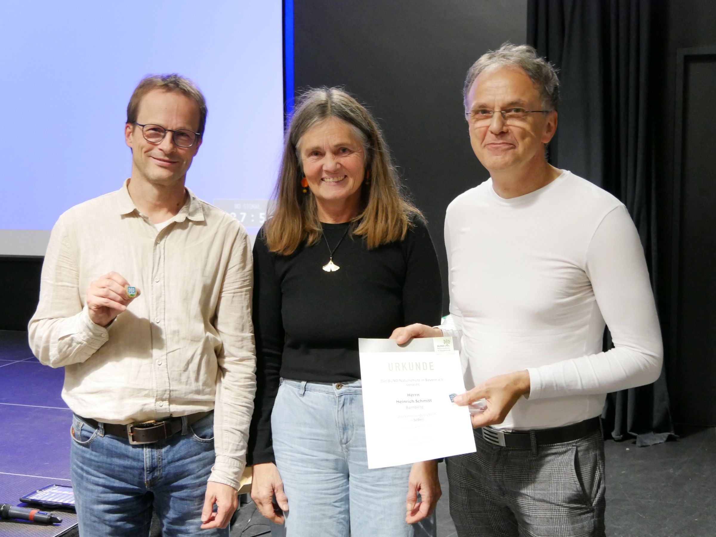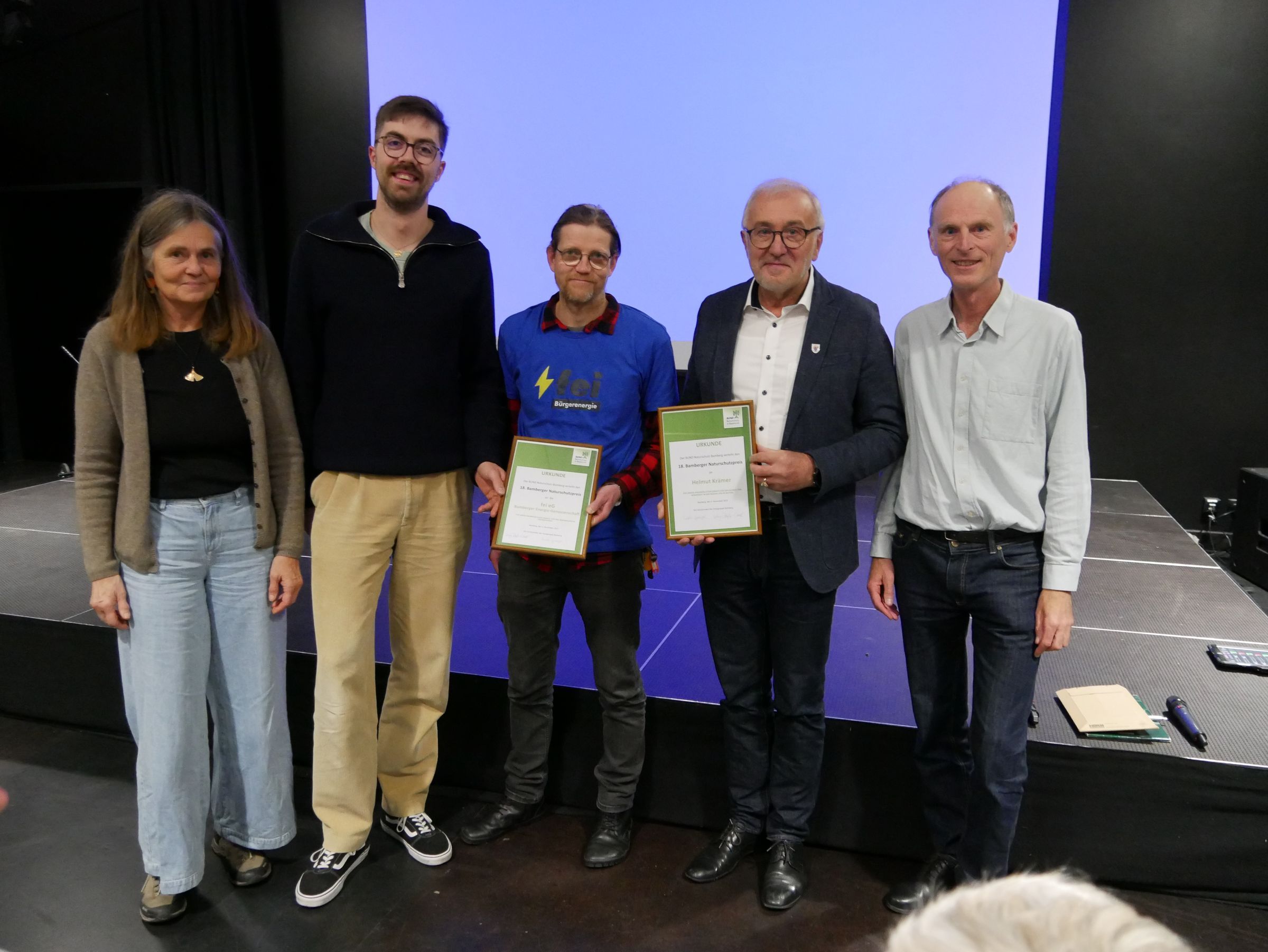 In der zweite Hälfte des Abends wurden zwei Akteure im Bereich der erneuerbaren Energien mit dem Bamberger Naturschutzpreis ausgezeichnet. Der Bamberger Naturschutzpreis ist mit 1000 Euro dotiert und wird jährlich von der Kreisgruppe Bamberg vergeben.
