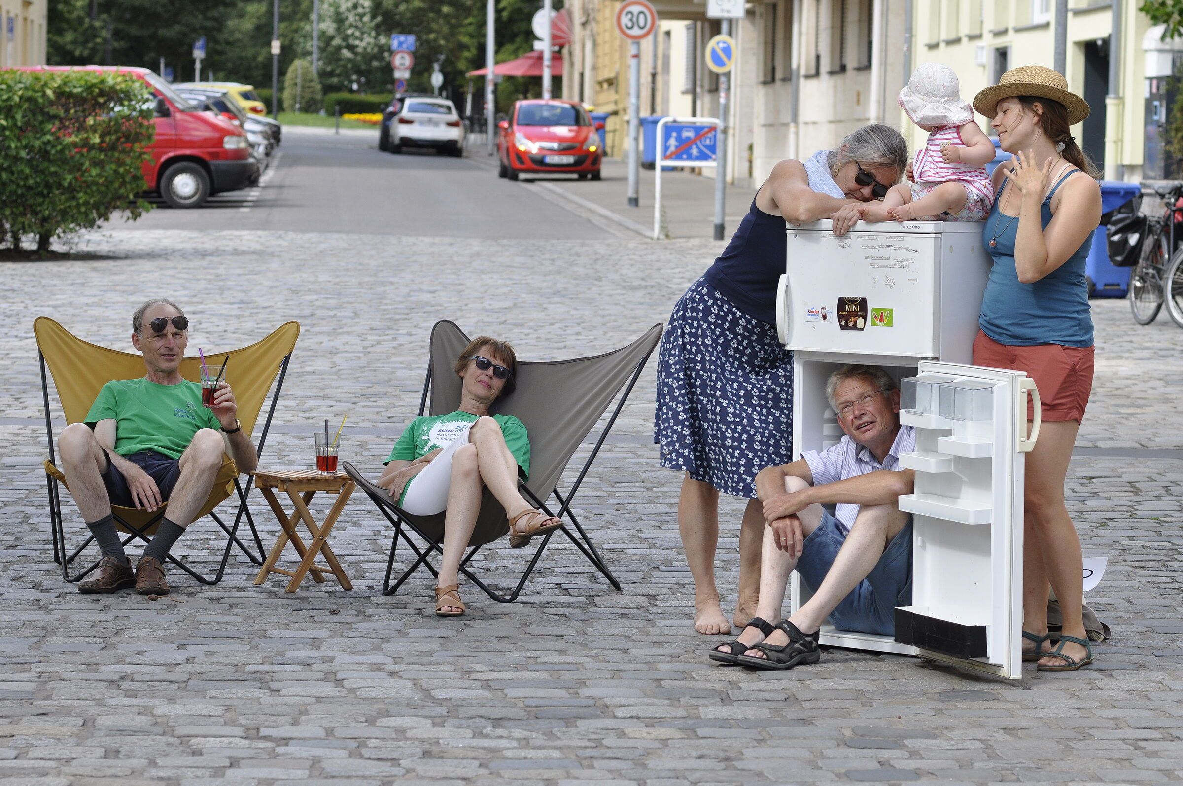 Bamberg. Die Temperaturen steigen stetig und ein heißer Tag jagt den nächsten. Nun sollte jeder verstanden haben, dass wir uns in einer Phase der stetigen Erderwärmung befinden und dass die Klimakatastrophe in vollem Gange ist. Mit einer symbolischen Aktion machte der BUND Naturschutz Bamberg (BN) darauf aufmerksam und mahnte mehr Schatten spendende Bäume in der Stadt und wirksamen Klimaschutz auf allen Ebenen an.